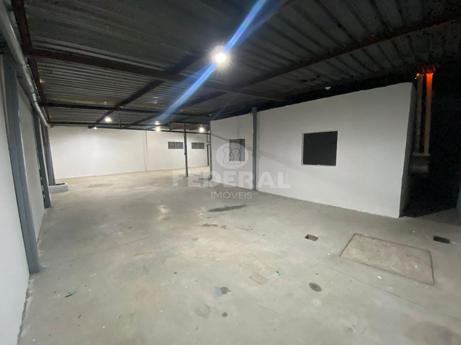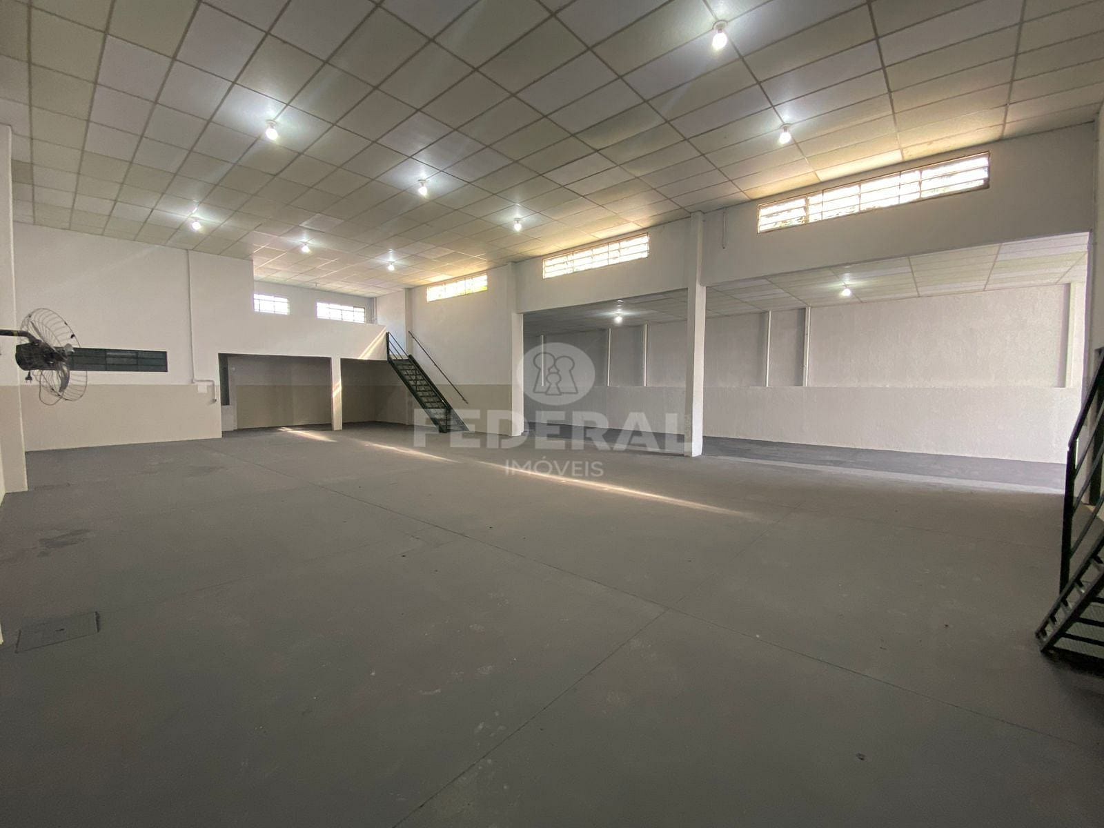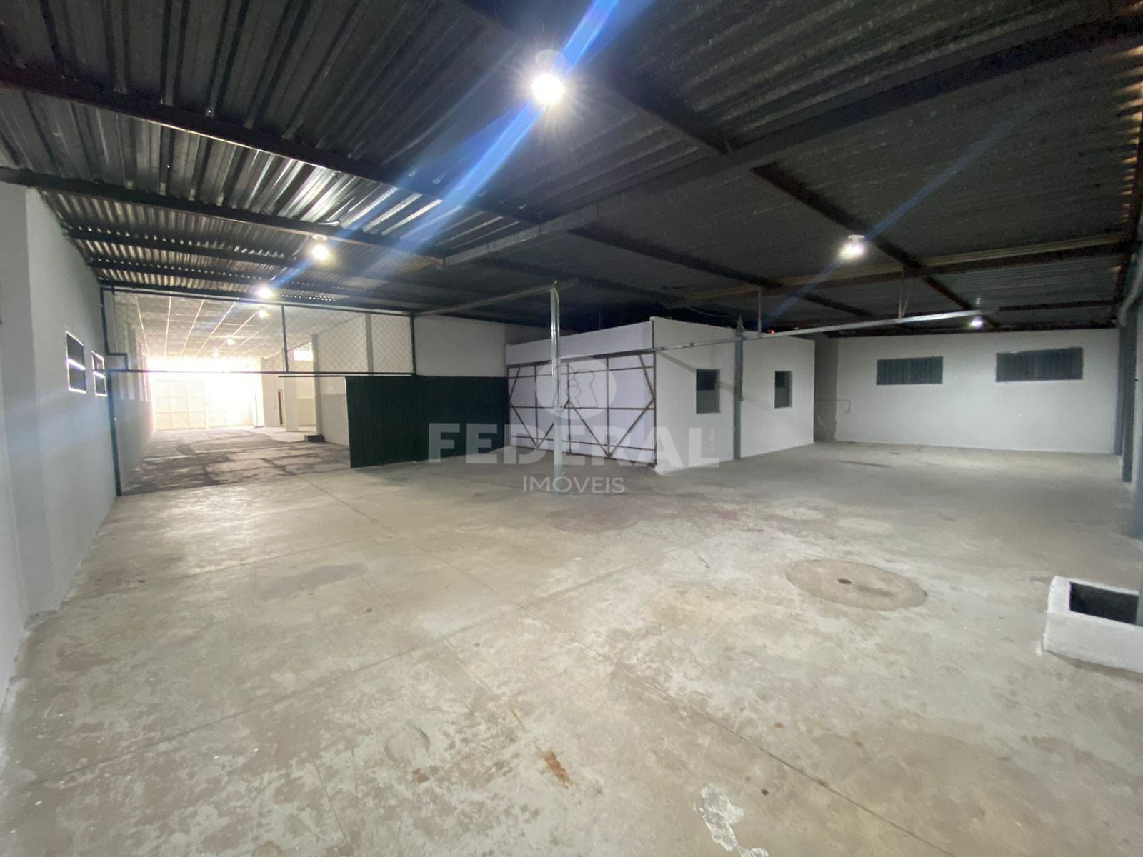 Amplo Galpão com mezanino, portão de entrada grande, salas para escritório, mezanino nos fundos com copa, cozinha, banheiros, deposito. Piso concreto usinado. Próximo ao Posto Carreteiro.