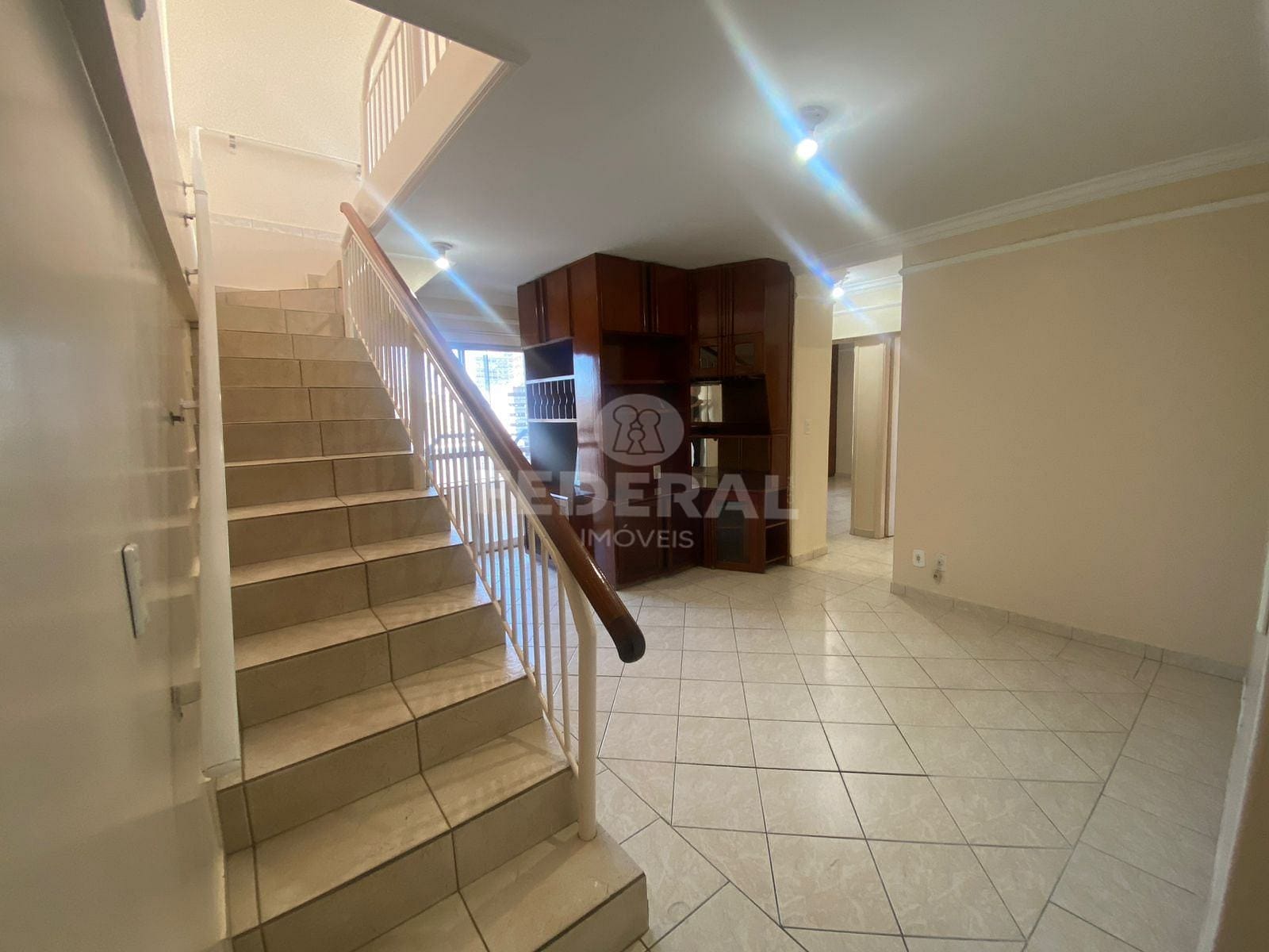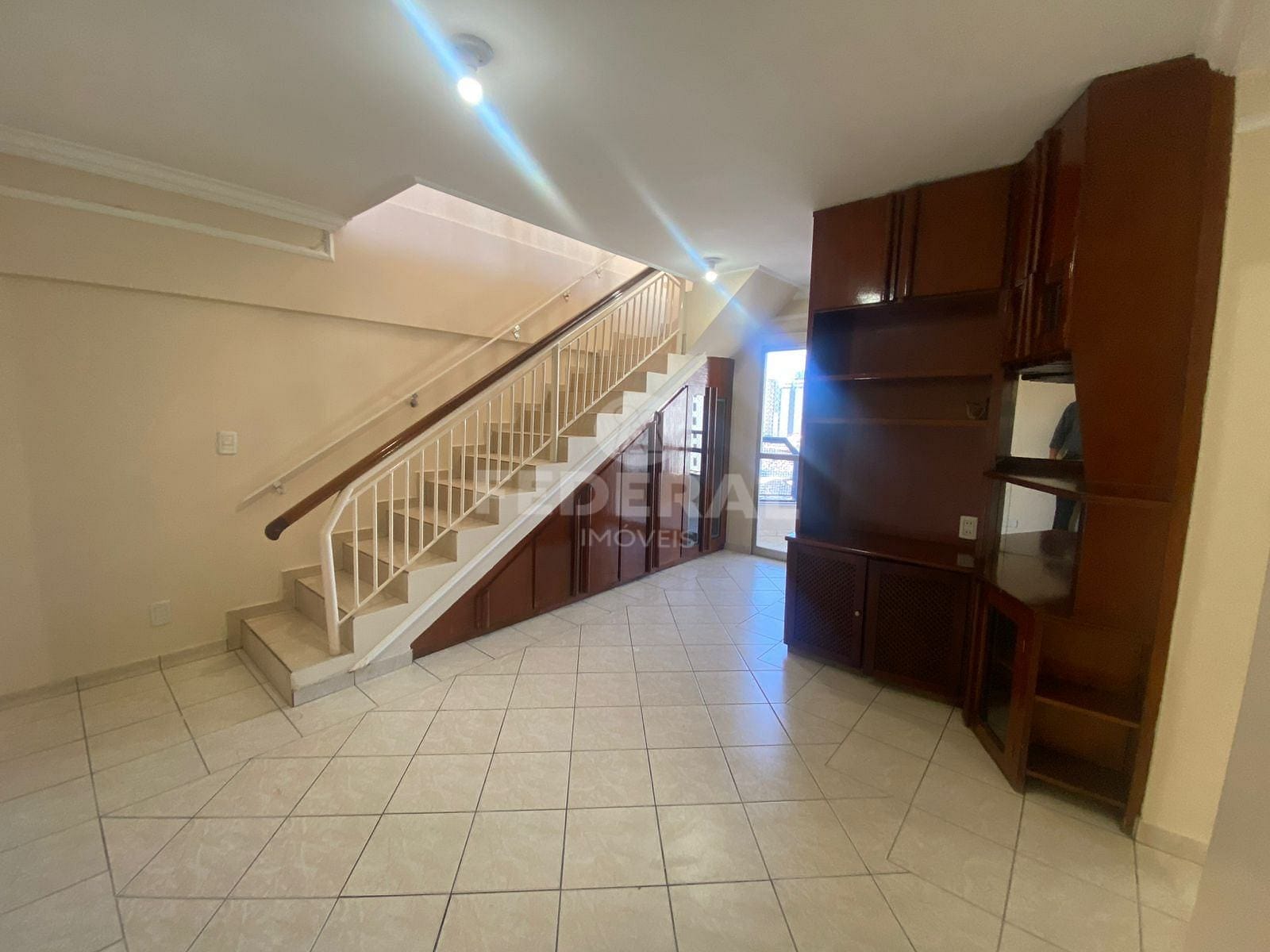 Apartamento COBERTURA – 03 quartos rico em armários (sendo 02 suítes), sala com rack e estante, ampla sacada fechada em blindex, banheiro social com armários.