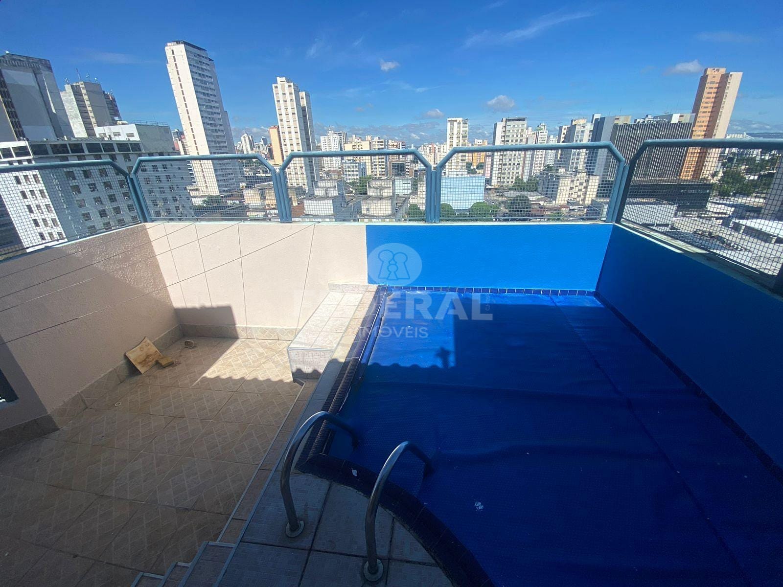 terraço com suite master com armários e banheira de hidromassagem, sala de tv, lavabo, solarium com piscina e área de serviço, 02 garagens paralelas