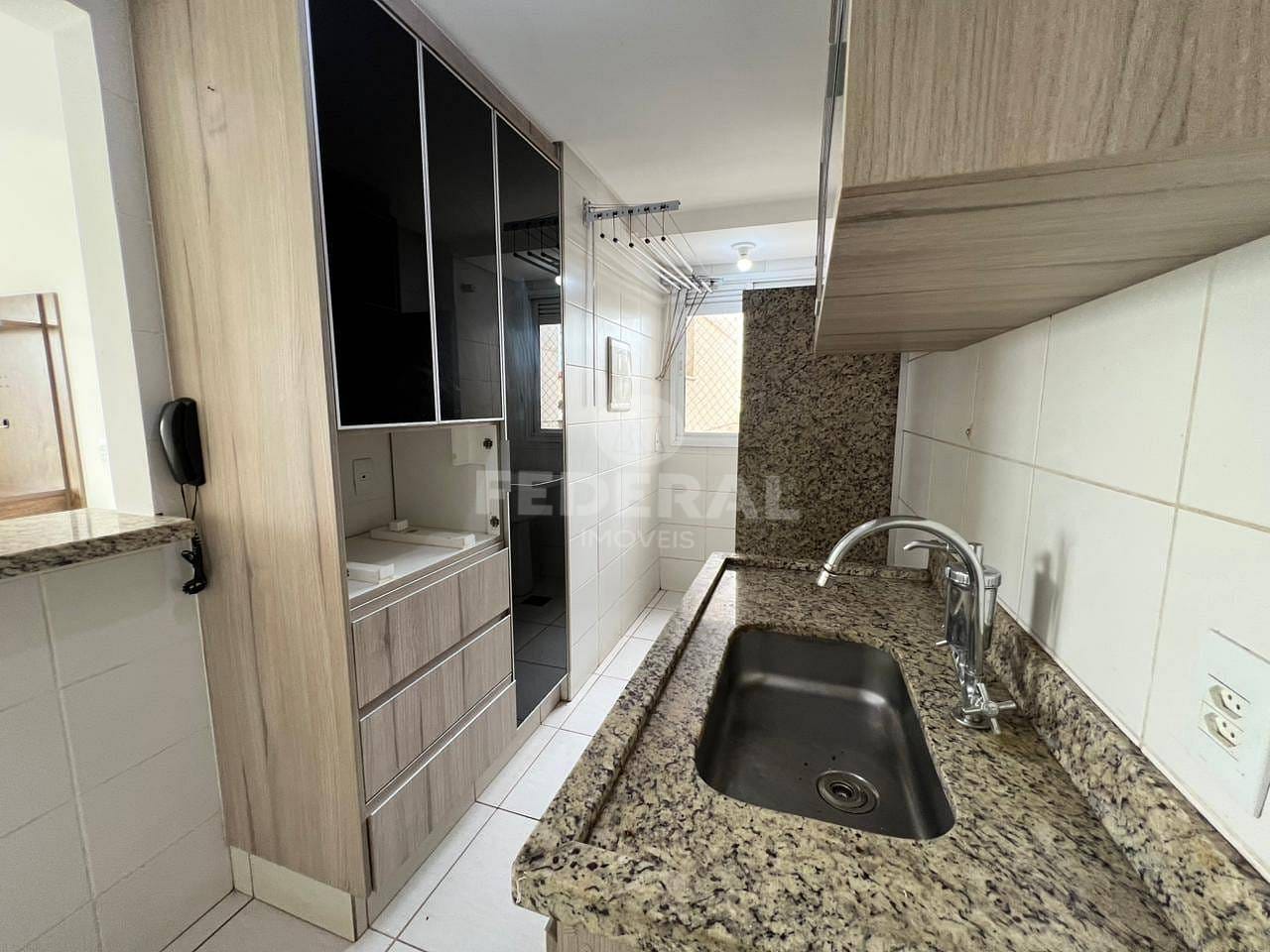 Excelente apartamento com dois quartos com armários (sendo uma suíte), sala para dois ambientes com sacada, banheiro social com box e armários, cozinha completa em armários, área de serviço e uma vaga de garagem.