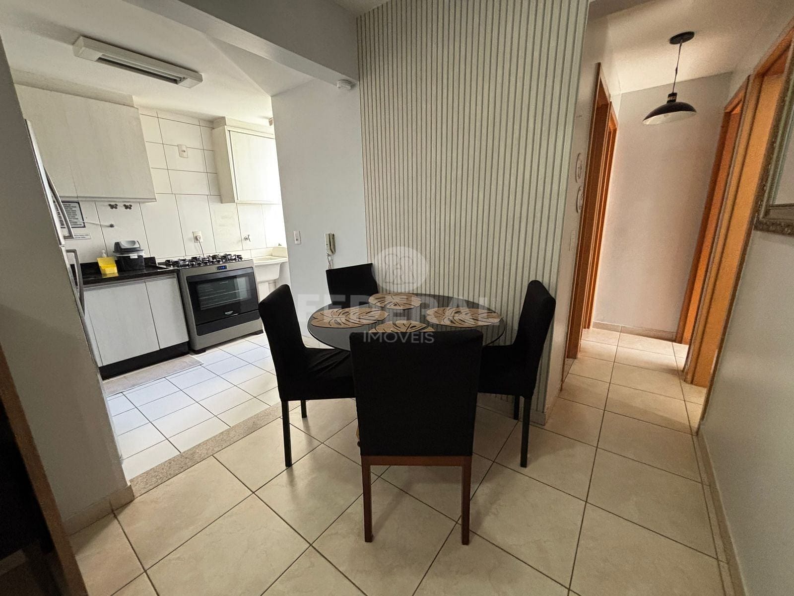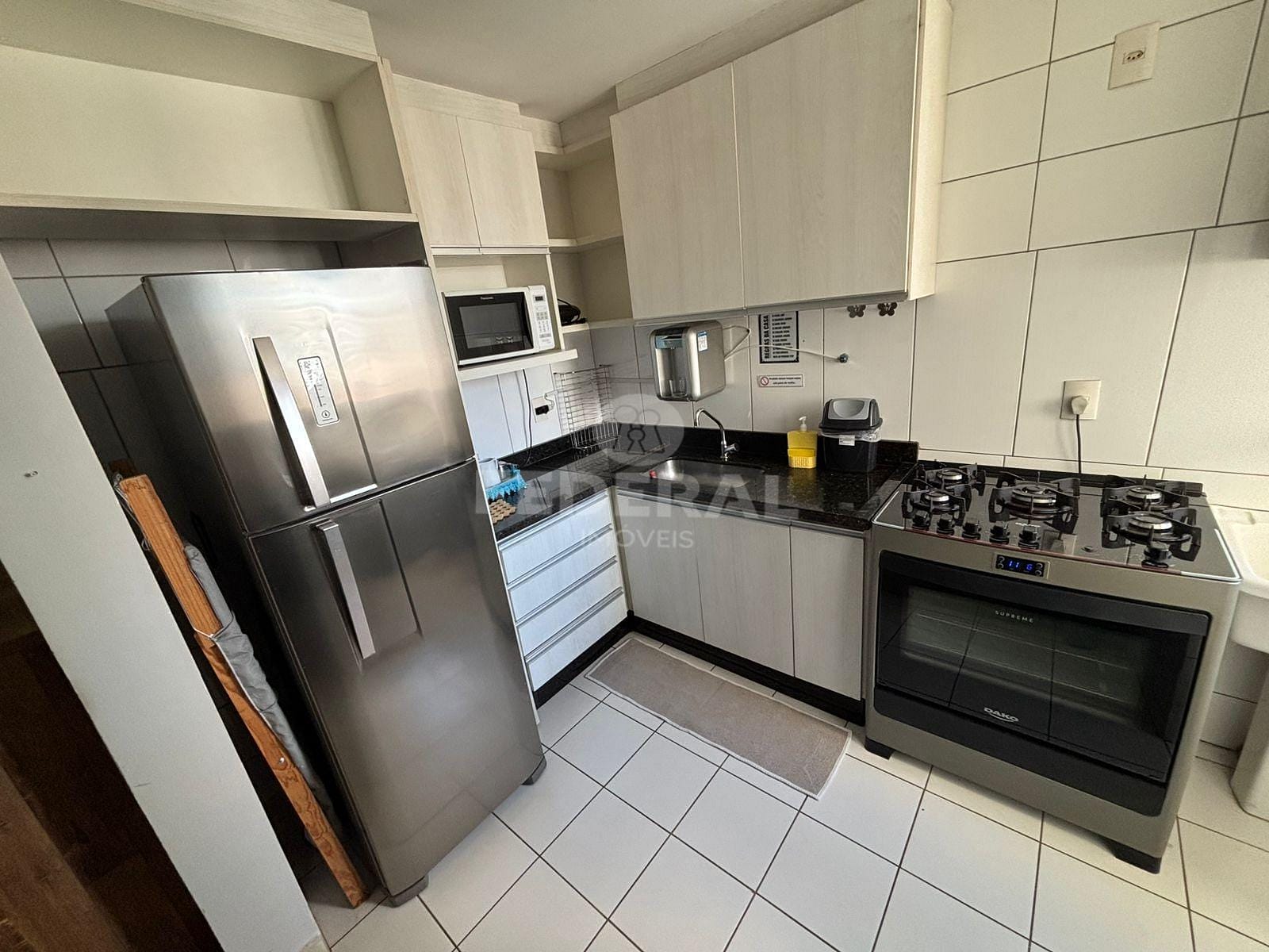 Apartamento mobiliado 03 quartos sendo uma suíte com tv, todos os quartos com cama (duas de casal), armários e ar-condicionado, sala 02 ambientes com sofá, tv, mesa, sacada, cozinha com armários, fogão, geladeira. filtro, micro-ondas, área de serviço com máquina de lavar.