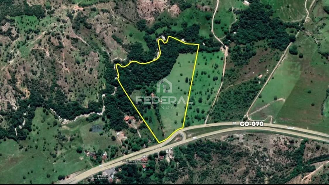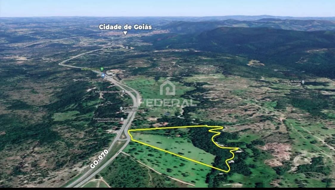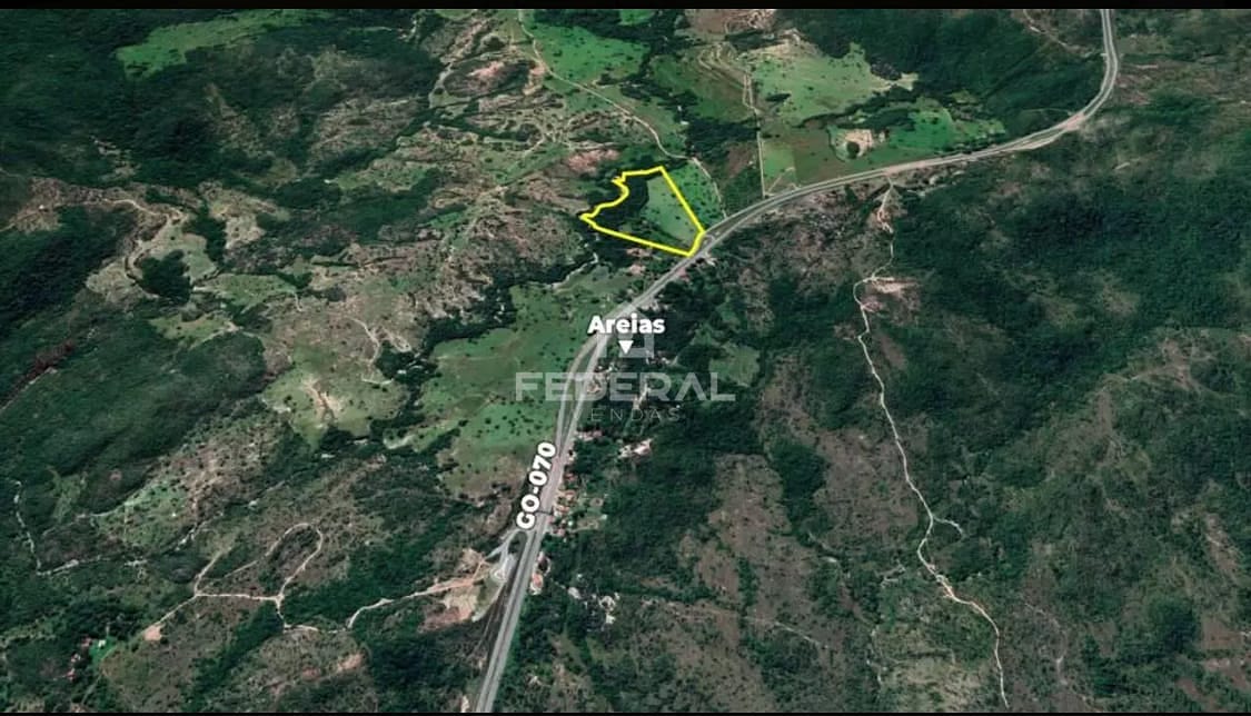 Chácara de alqueires goianos, 97.600 m2, plana, cercada, formada, curral, pomar, com 1 casa de 2 quartos e 1 chalé de 1 quarto, com ribeirão nos fundos com reserva permanente, em frente o povoado de areias, à 6 km da cidade de Goiás.