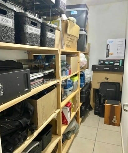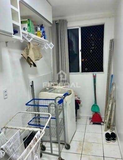Na parte inferior tem 3 quartos (1 suíte) com armários, banheiro social e lavanderia.