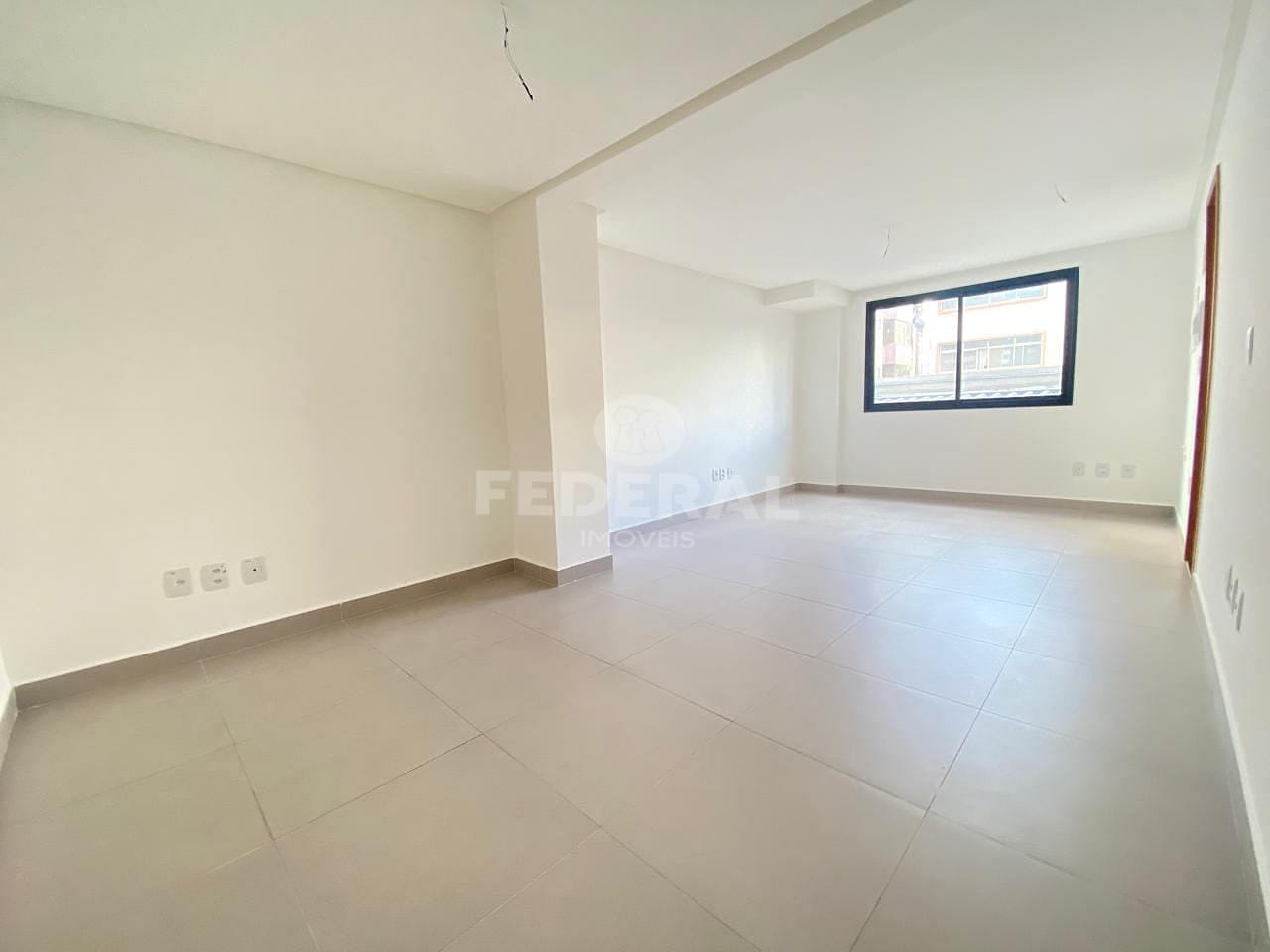 Sala com 27m², banheiro privativo, piso porcelanato, não possui vaga de garagem.