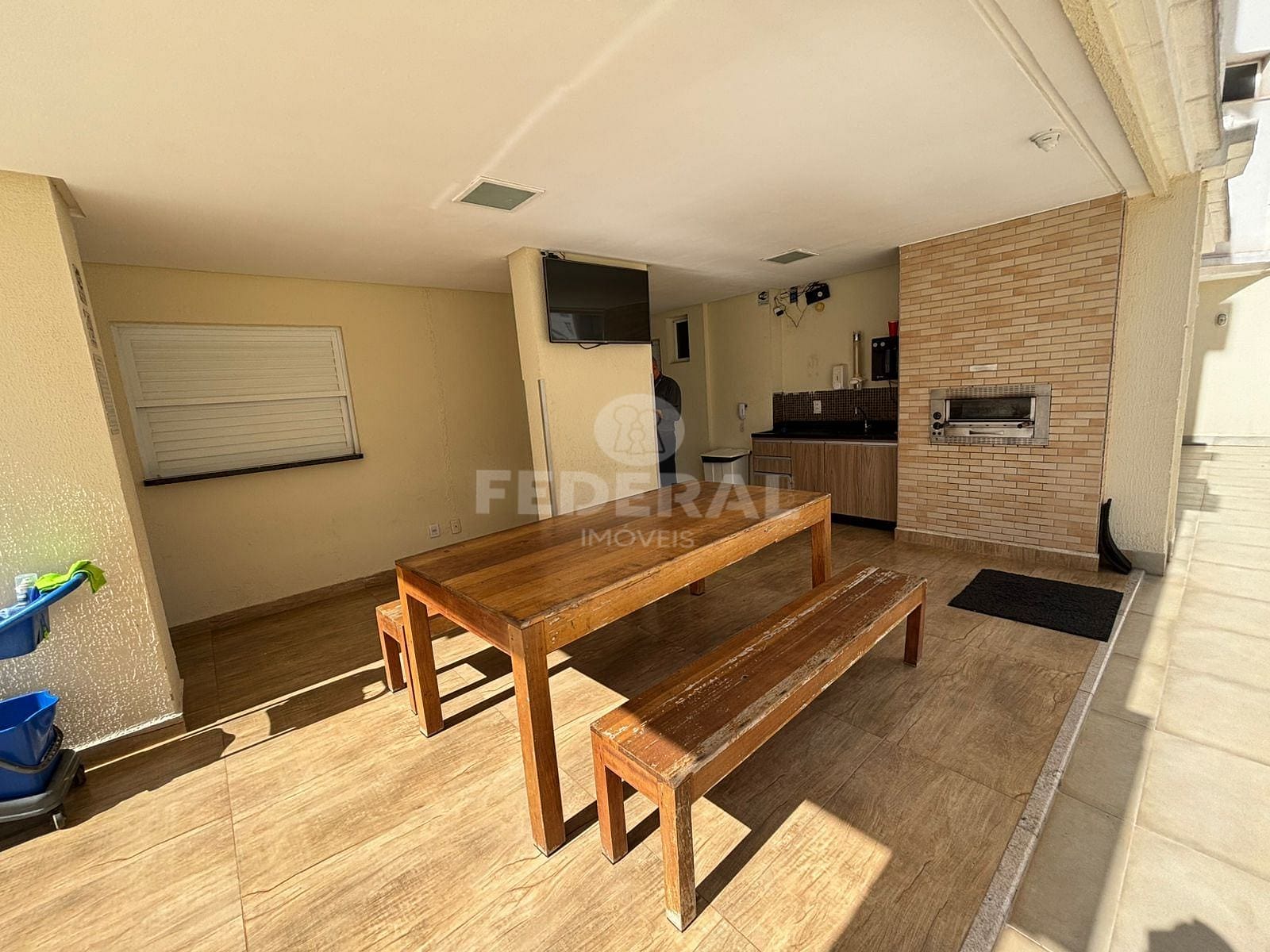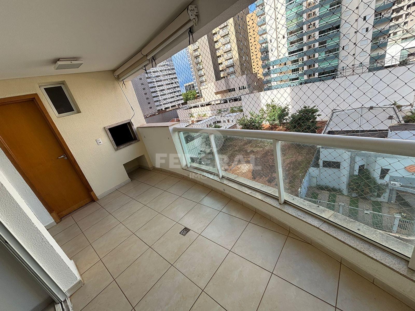 Apartamento três suítes com armários, sacada na suíte principal, sala para dois ambientes com varanda gourmet com churrasqueira a carvão, lavabo, cozinha com armários, área de serviço, garagem gaveta e escaninho.