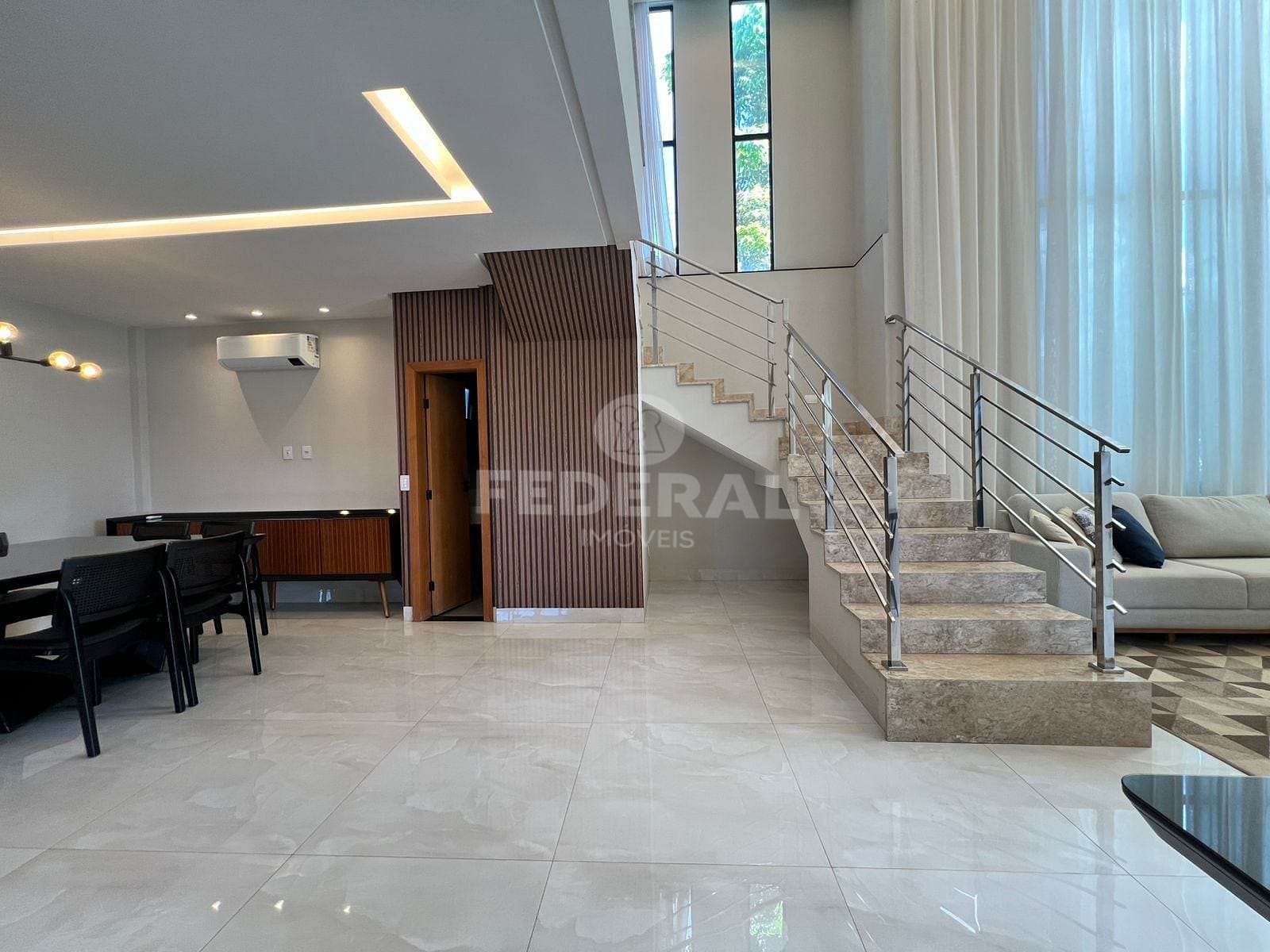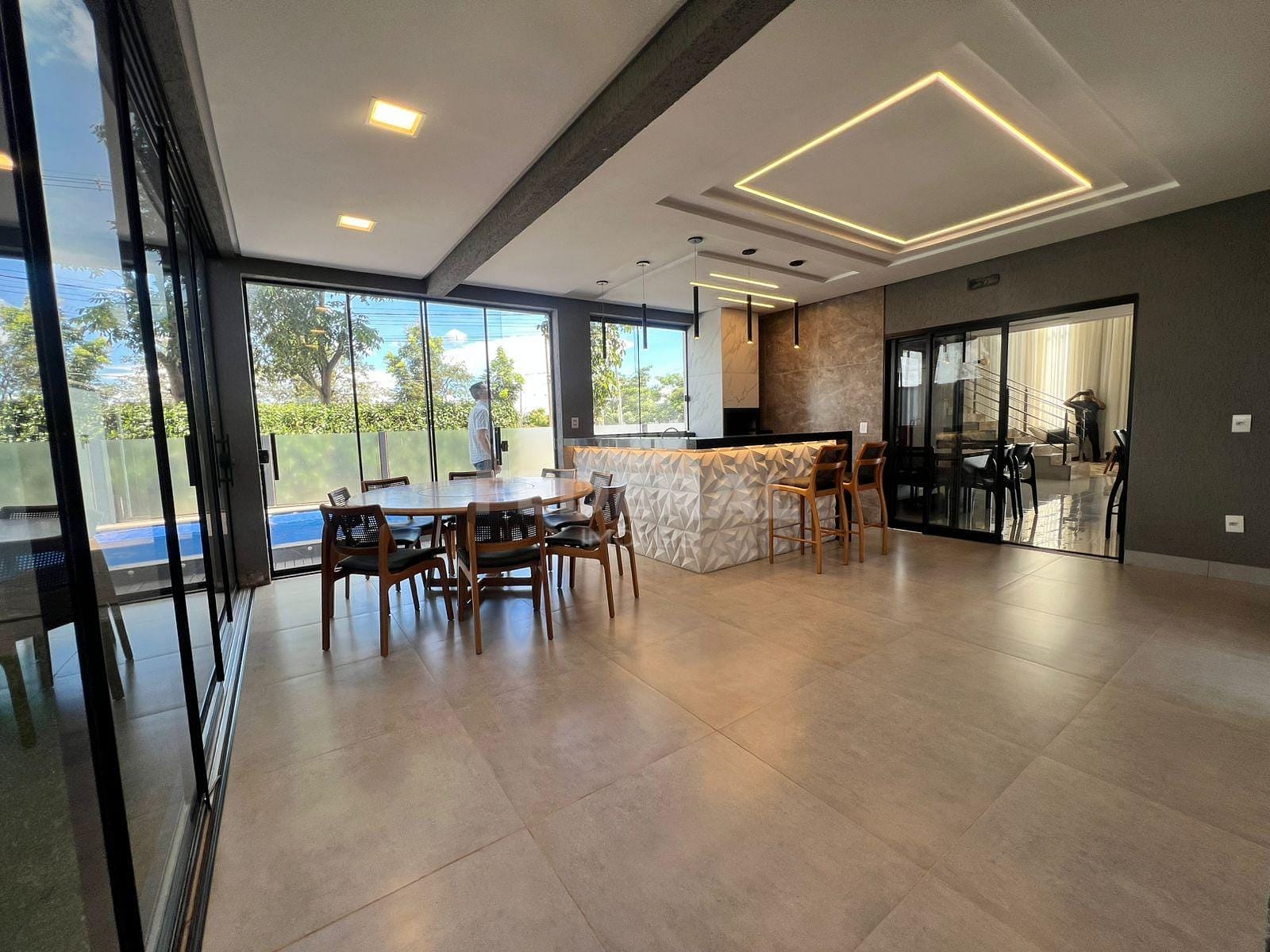 Excelente sobrado de esquina – totalmente mobiliado e repleto em armarios planejados , ar condicionado em todos os ambientes, sendo 03 suites plenas(sendo suite principal com sacada, banheira, 02 cubas, closet), sala intima na parte superior com sofa e televisão – parte inferior – com sala de estar ampla, sala de jantar com mesa com 08 cadeiras e aparador, cozinha americana completa em armarios, com geladeira side by side, cocktop, coifa, microondas e forno, espaco gourmet amplo com mesa/cadeiras, bancada com churrasqueira, portas bivoltantes , piscina aquecida, jardim.