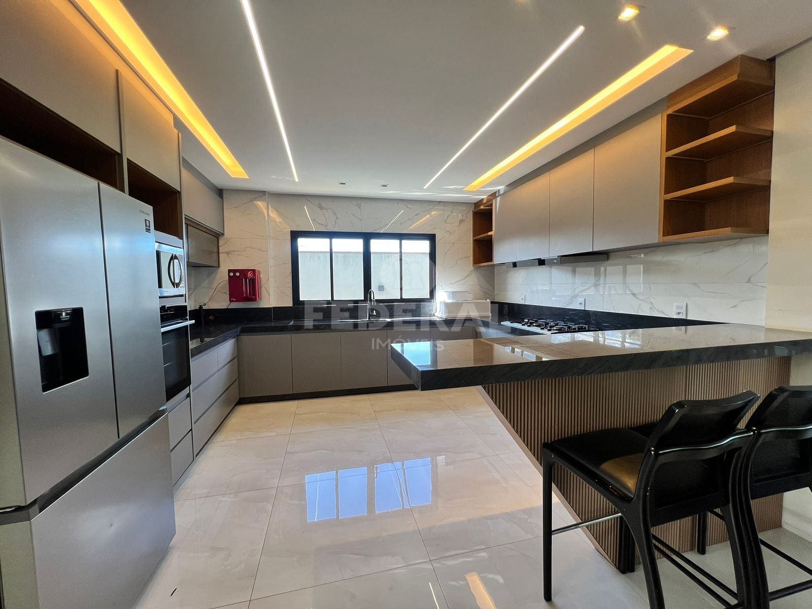 Convivência: Salão de festas com cozinha montada.